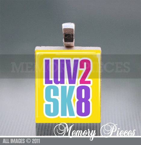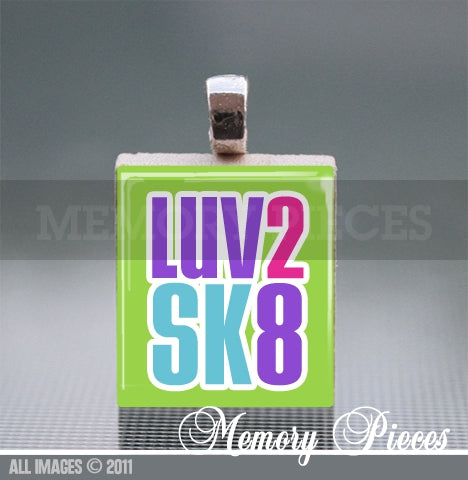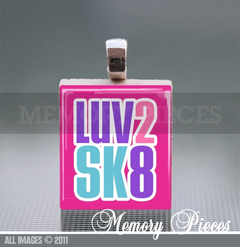 'LUV2SK8' Scrabble Tile Pendant with Ball Chain