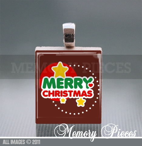 Merry Christmas Cutie Scrabble Tile Pendant with Silver Ball Chain
