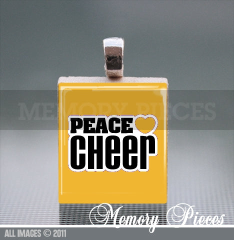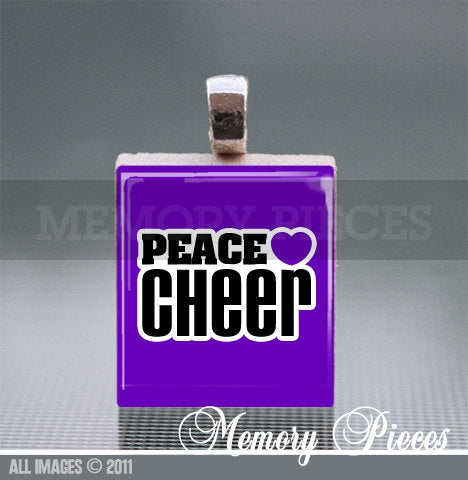 'Peace Love Cheer' Purple Scrabble Tile Pendant with Ball Chain