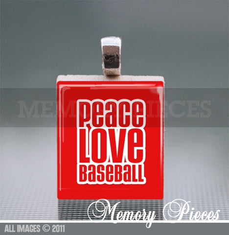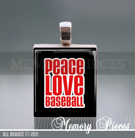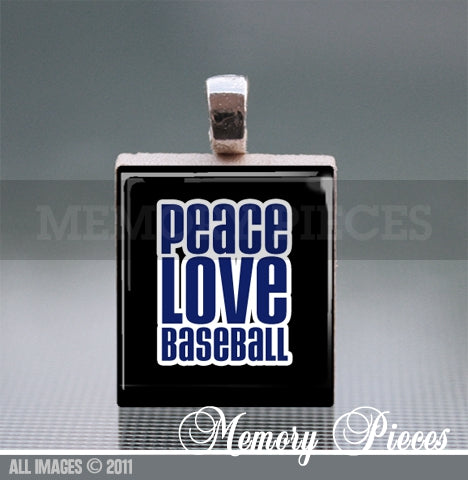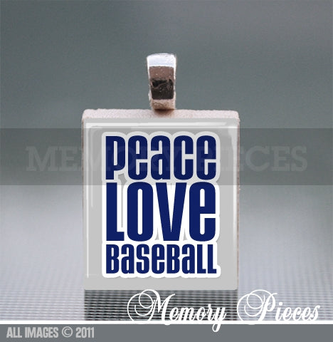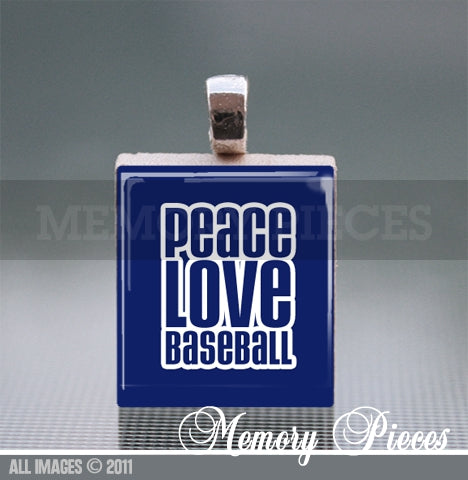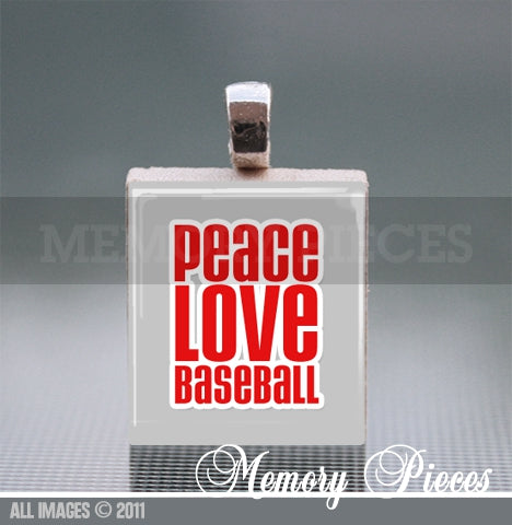 'Peace Love Baseball' Scrabble Tile Pendant with Ball Chain