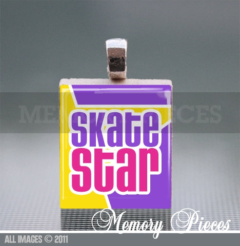 'Skate Star' Scrabble Tile Pendant with Ball Chain