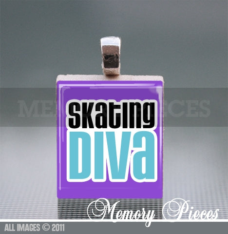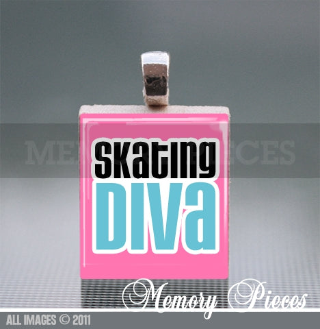 'Skating Diva' Scrabble Tile Pendant with Ball Chain