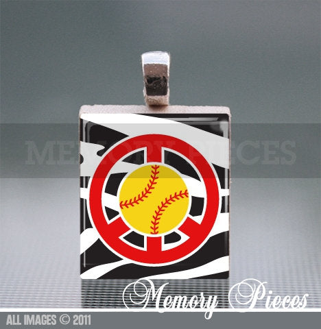 Softball Peace Scrabble Tile Pendant with Ball Chain