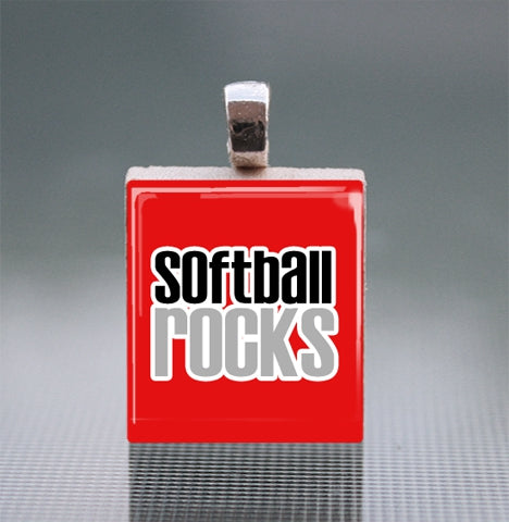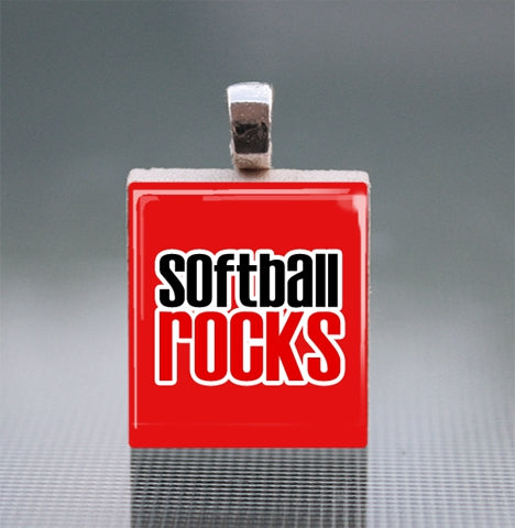 'Softball Rocks' Scrabble Tile Pendant with Ball Chain