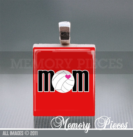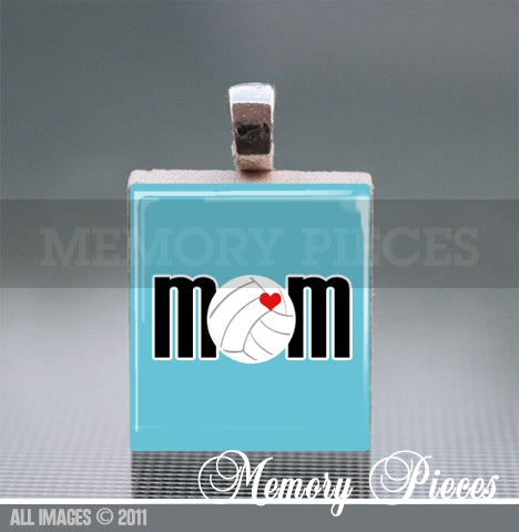 'Mom' Volleyball Scrabble Tile Pendant with Silver Ball Chain