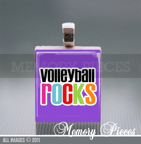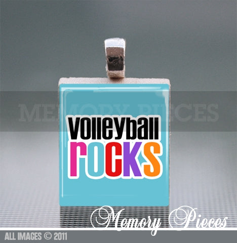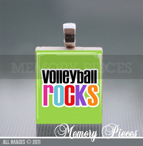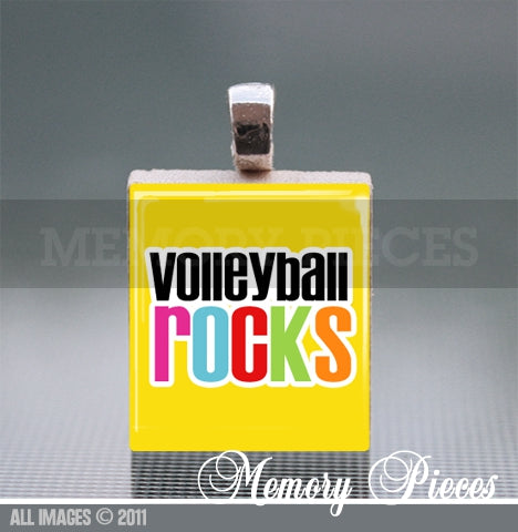 'Volleyball Rocks' Scrabble Tile Pendant with Ball Chain