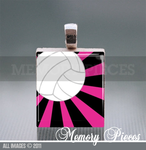 Volleyball with Rays Scrabble Tile Pendant with Ball Chain