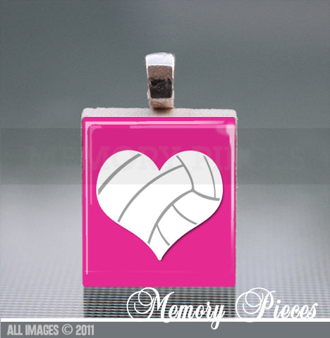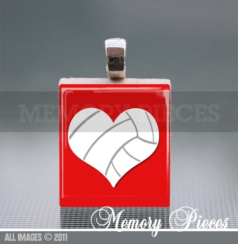 Volleyball Scrabble Tile Pendant with Ball Chain